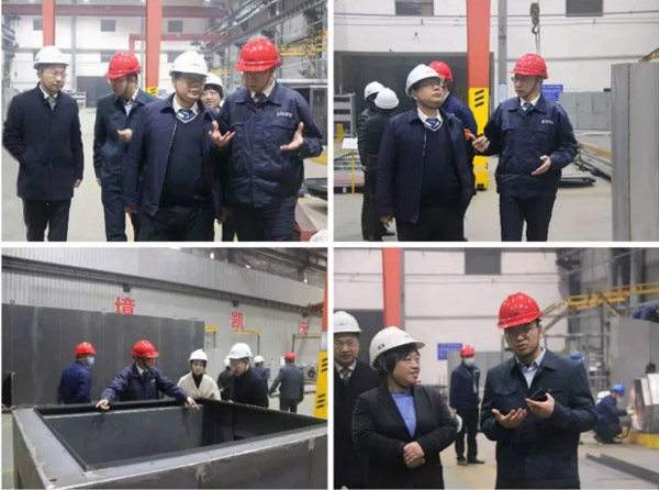 姜晖一行来到生产车间,到各工位上仔细察看了员工们热火朝天的工作状态,一边走一边听取环保装备事业部董事长曾毅夫、总经理周益辉、副总经理李刚等人的介绍,了解生产情况、生产进度及安全质量等方面情况,并将工会精心准备的慰问品分别送至车间加班工作人员手中。