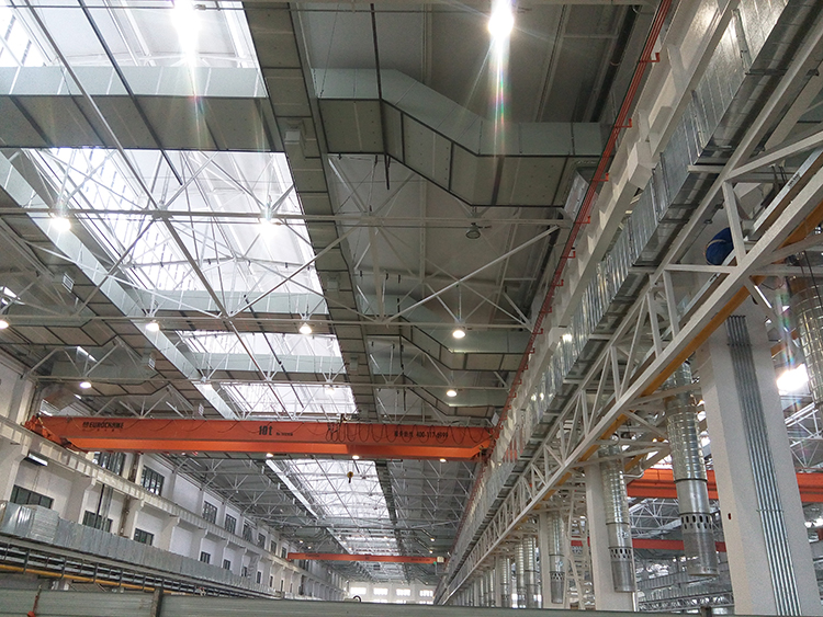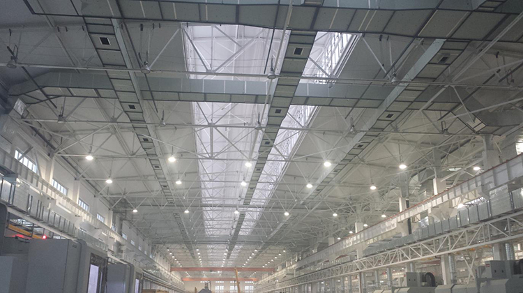 中航工业某公司机加油雾废气整体治理:该车间是为我国某型号大飞机专门建立的高精度数控机加工车间,具有跨度大、空间高、面积大、温湿度控制精度高的特点,由于采用了乳化液作为切屑冷却液,车间整体易出现送回风短路,气流组织不合理,车间油雾、废气无法消除等问题,而这一直也是该公司车间项目建设的难点。项目组开创性的采用我司自主研发的整体厂房通风除尘净化控温控湿除油雾技术,车间温湿度控制精度高,车间内可实现100%换气率,空气新鲜度高;同时能彻底解决油雾净化问题,不会对大气造成二次污染,被整个中航集团评为优质工程,在全集团内推广,有力保证了大飞机的生产。